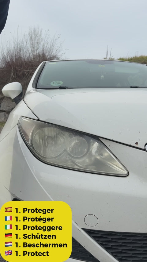 Une fois le phare sec et à l'ombre, appliquez le liquide protecteur avec le coton.
